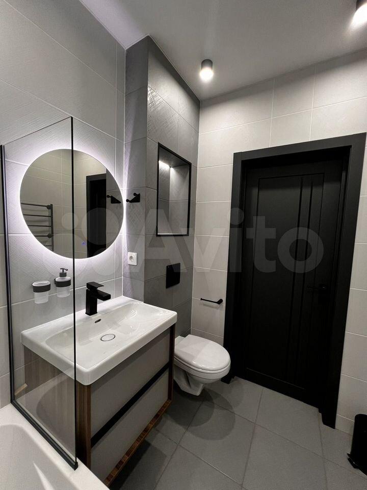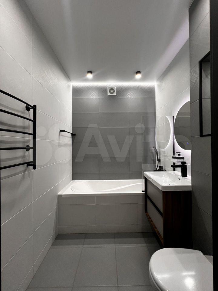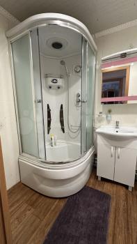 Кухня-гостиная просторная, площадью 20 м², оснащена всей необходимой техникой и стильным интерьером. Санузел совмещенный, выполнен в светлых тонах. Курение и проживание с животными не допускается. Возможно проживание с детьми старше 7 лет