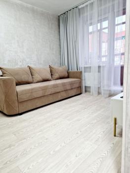 В комнате сделан косметический ремонт, поэтому она выглядит свежо и аккуратно. В сан узле унитаз и душ- маленькая ванна. Из мебели пока только диван и кухня. Для вашего удобства будет установлен холодильник и телевизор (по договоренности). Рядом с домом расположены детские сады, клиники и магазины. Все необходимое буквально в шаговой доступности.