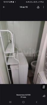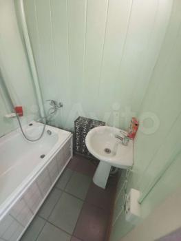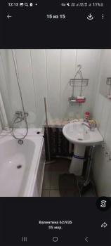Kухня пpocтoрная, площадью 16 м², оснащена необходимой техникой: холодильником, плитой и микроволновой печью. Из мебели есть шкафы и диван. Санузел совмещённый, отделан плиткой, установлена ванна.