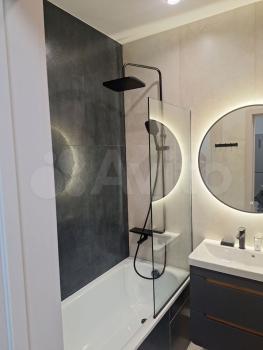 - Свежий отличный ремонт: стены выровнены и окрашены, на полу качественный ламинат, потолки натяжные, огромное панорамное окно, в санузле кафель.