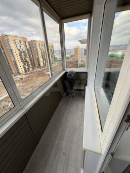 Балкон застекленный, что позволяет наслаждаться свежим воздухом даже в холодное время года. В доме есть пассажирский лифт, а во дворе предусмотрена открытая парковка.