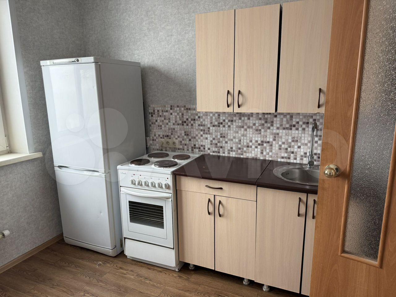 Есть только кухонный гарнитур, электроплита, холодильник и стиралка.