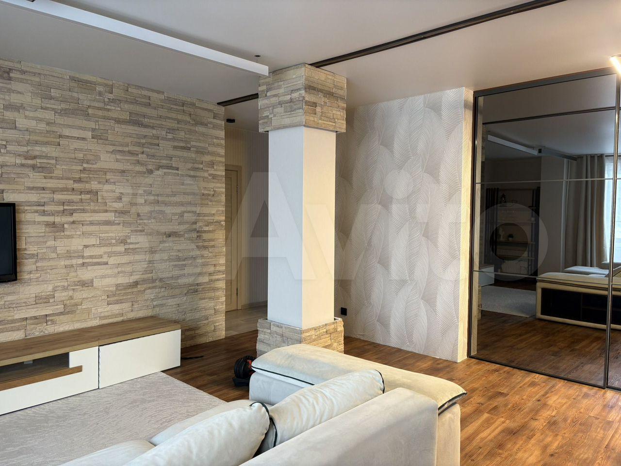 В квартире выполнен косметический ремонт, комнаты изолированы, что создает уютную атмосферу для проживания. В гостиной установлен современный диван и телевизор, а также вместительные шкафы для хранения вещей.