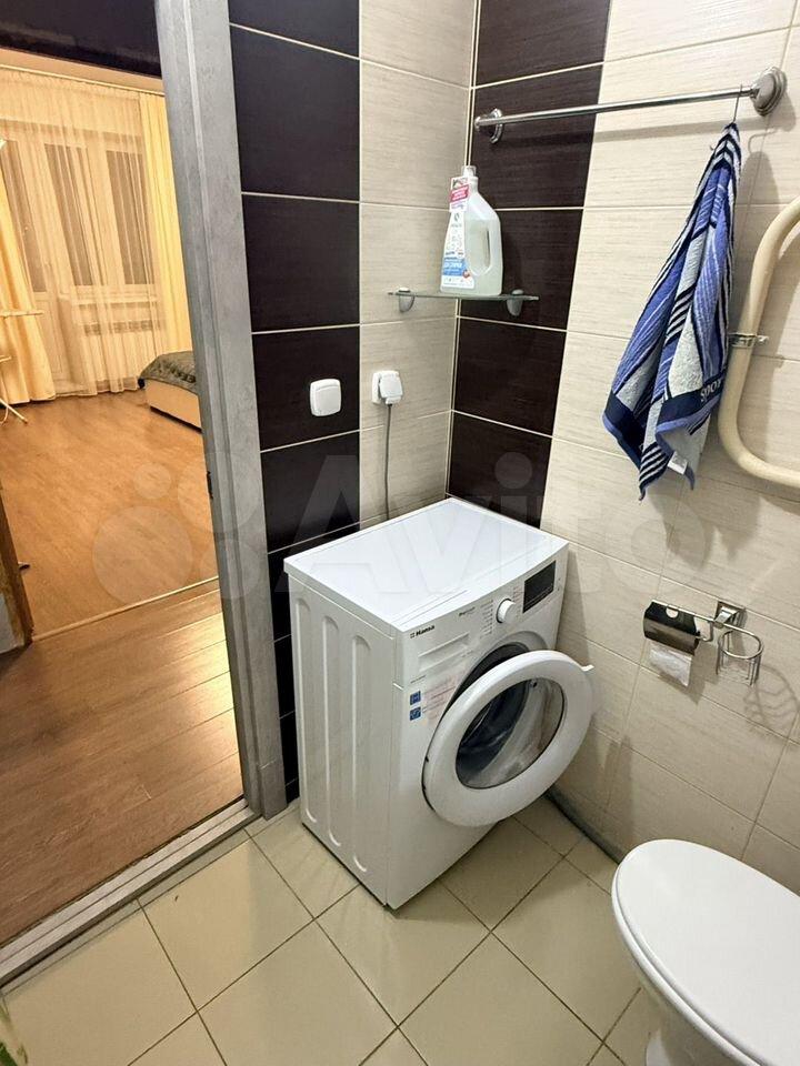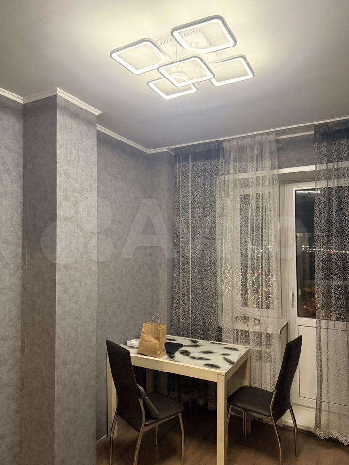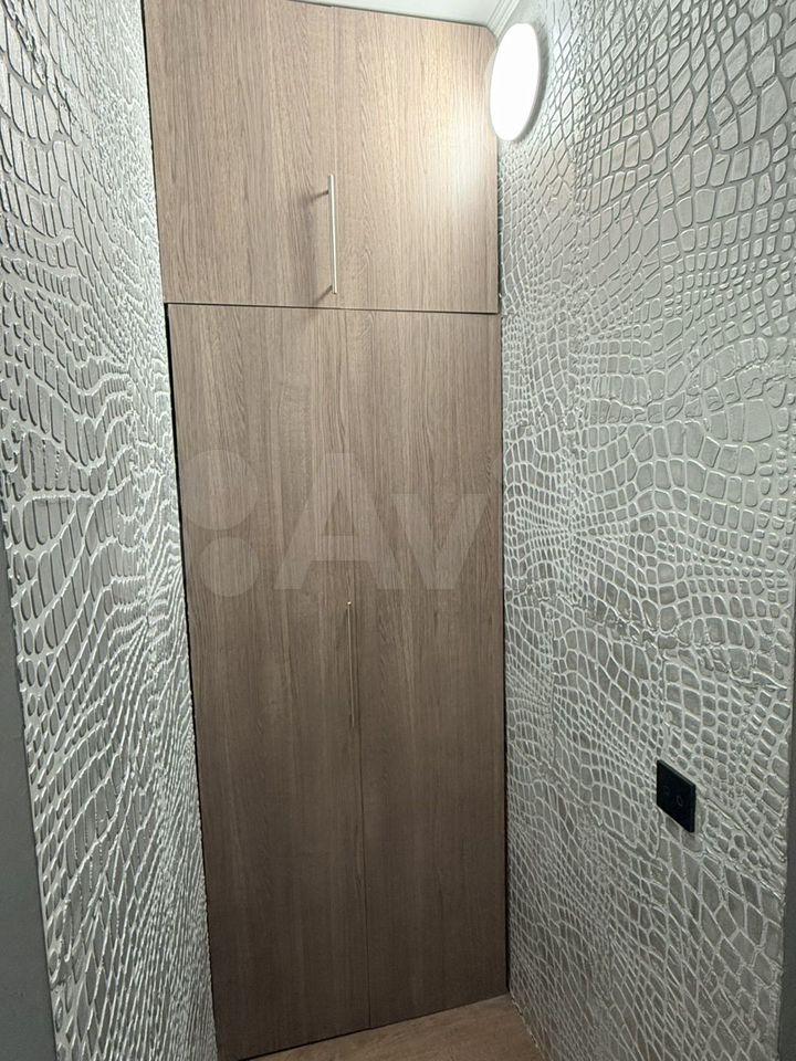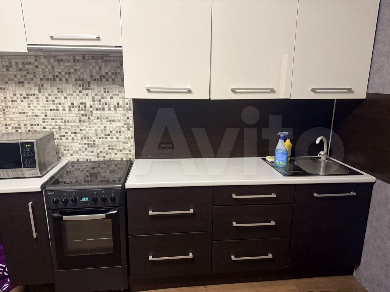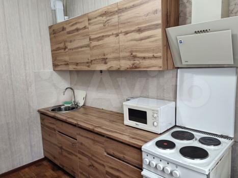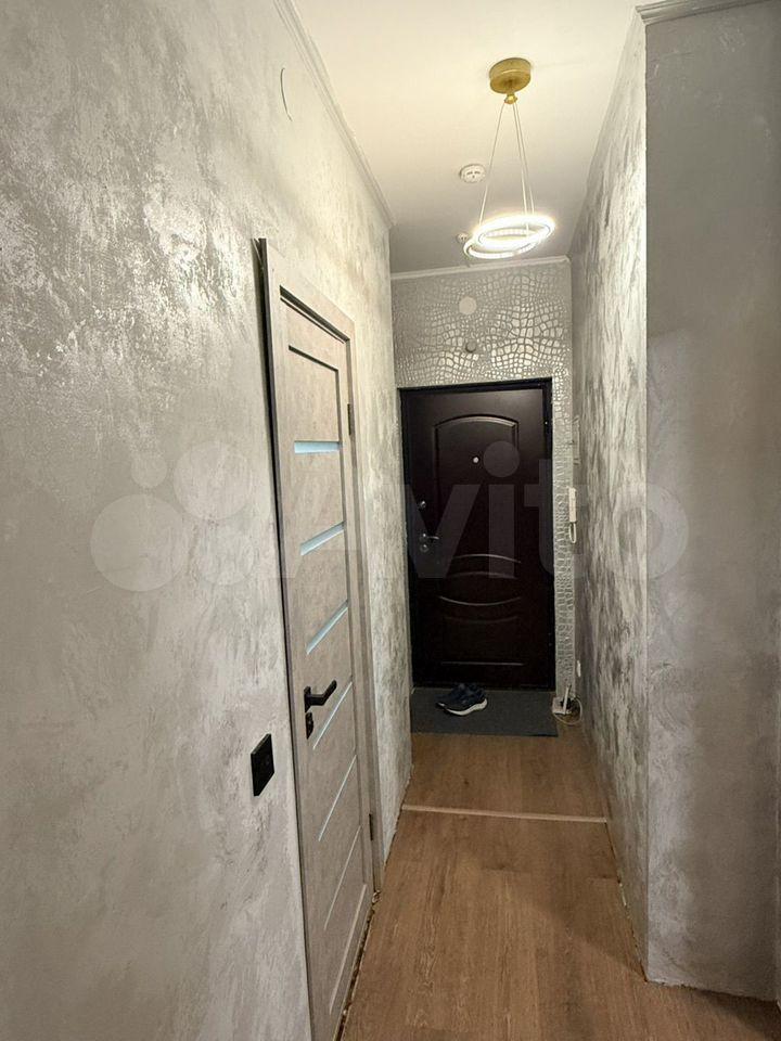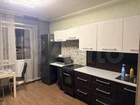 Квартира расположена на 10 этаже современного панельного дома 2026 года постройки. В квартире выполнен свежий евро-ремонт, что создает комфортную атмосферу. Просторная кухня оборудована необходимой бытовой техникой, включая холодильник и микроволновую печь. Санузел совмещенный, оформлен плиткой, есть стиральная машина, тумба и втроенная раковина. В комнате установлен удобный диван-кровать, комод, письменный стол и телевизор. В корредоре есть большой шкаф для хранения вещей.