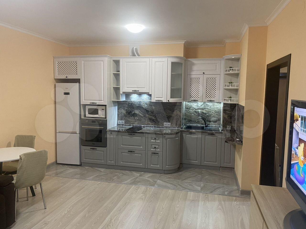 В квартире сделан свежий ремонт, уюта и комфорта добавляет продуманное освещение. К вашим услугам полностью мебелированный простор для жизни: светлая гостиная с мягким диваном и плоским телевизором, удобная спальня с большой кроватью и шкафом для белья и одежды. Вместительная кухня оборудована современной бытовой техникой, новым холодильником, плиткой и духовым шкафом.