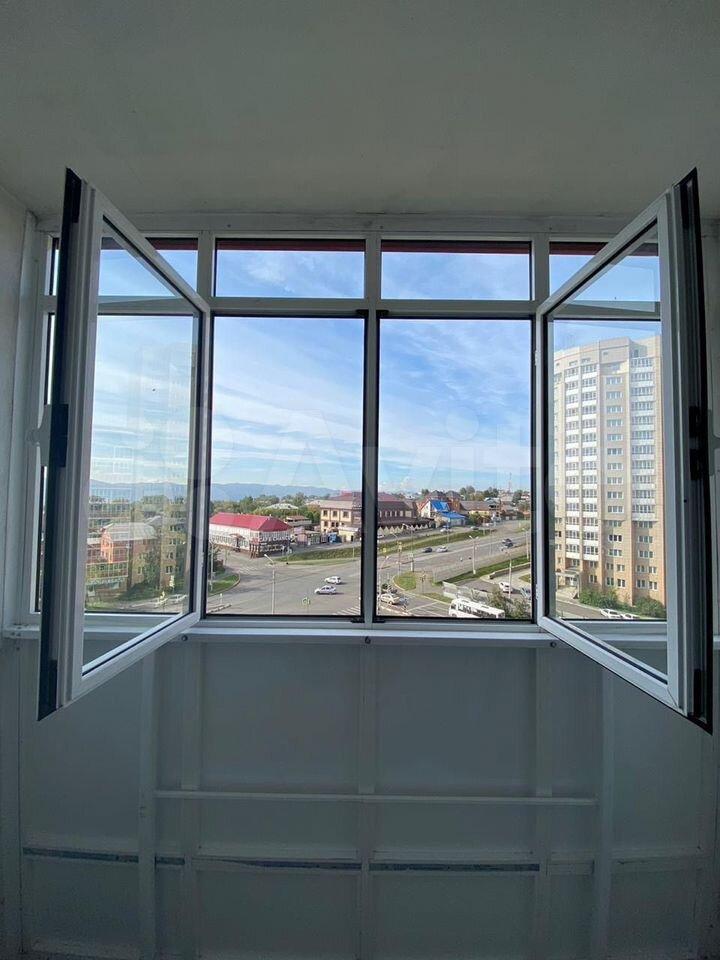 Широкая лоджия с красивым видом.