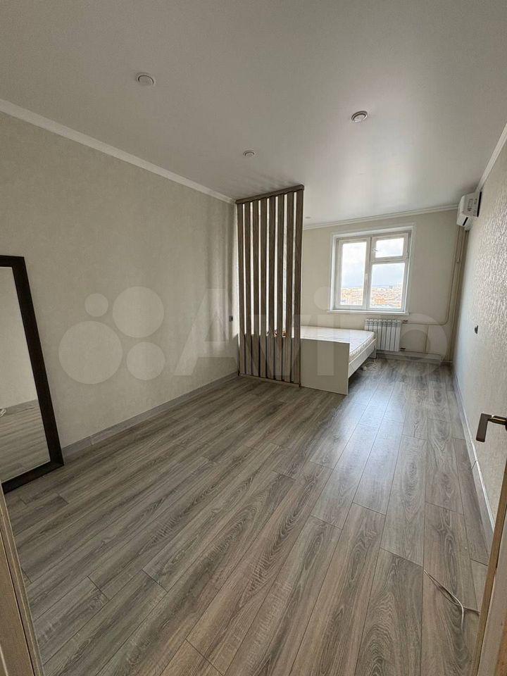 - Свежий отличный ремонт: стены выровнены и окрашены, на полу качественный ламинат, потолки натяжные, огромное панорамное окно, в санузле кафель.