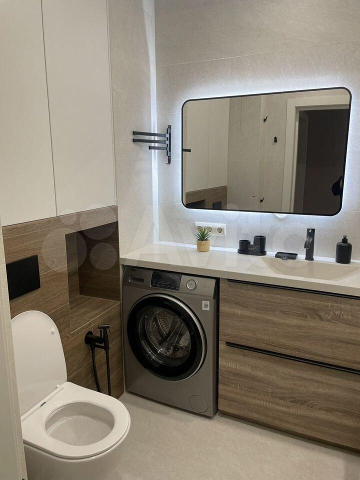 В ванной комнате установлена новая сантехника, а также стиральная машина.