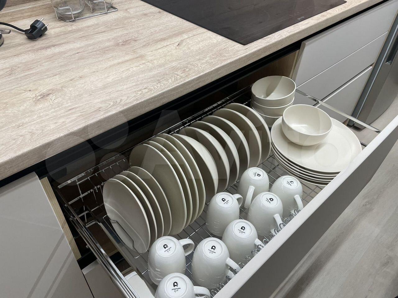 Все необходимое в наличии-плита встроенная, холодильник, микроволновка, кухонные принадлежности (новые кастрюля, сковорода, столовые приборы, посуда и пр.), диван, кухонный гарнитур, вешалка, стиральная