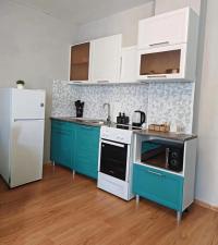 • вся необходимая бытовая техника на кухне: чайник, СВЧ, плита, холодильник и столовые принадлежности
