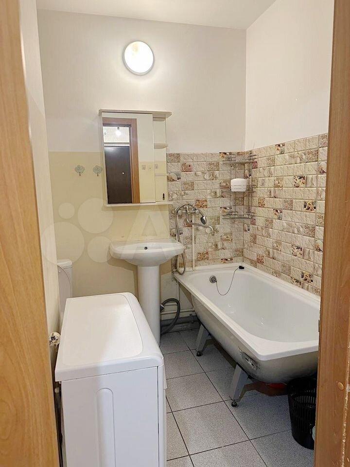 В квартире имеется вся необходимая мебель: шкафы, диван, обеденный стол и стулья. Из техники — холодильник, плита и стиральная машина. В ванной комнате установлена ванна и раковина.