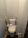 Просторный туалет, в котором унитаз, раковина, вмонтирован гигиенический душ, установлен бойлер на случай отключения горячей воды.