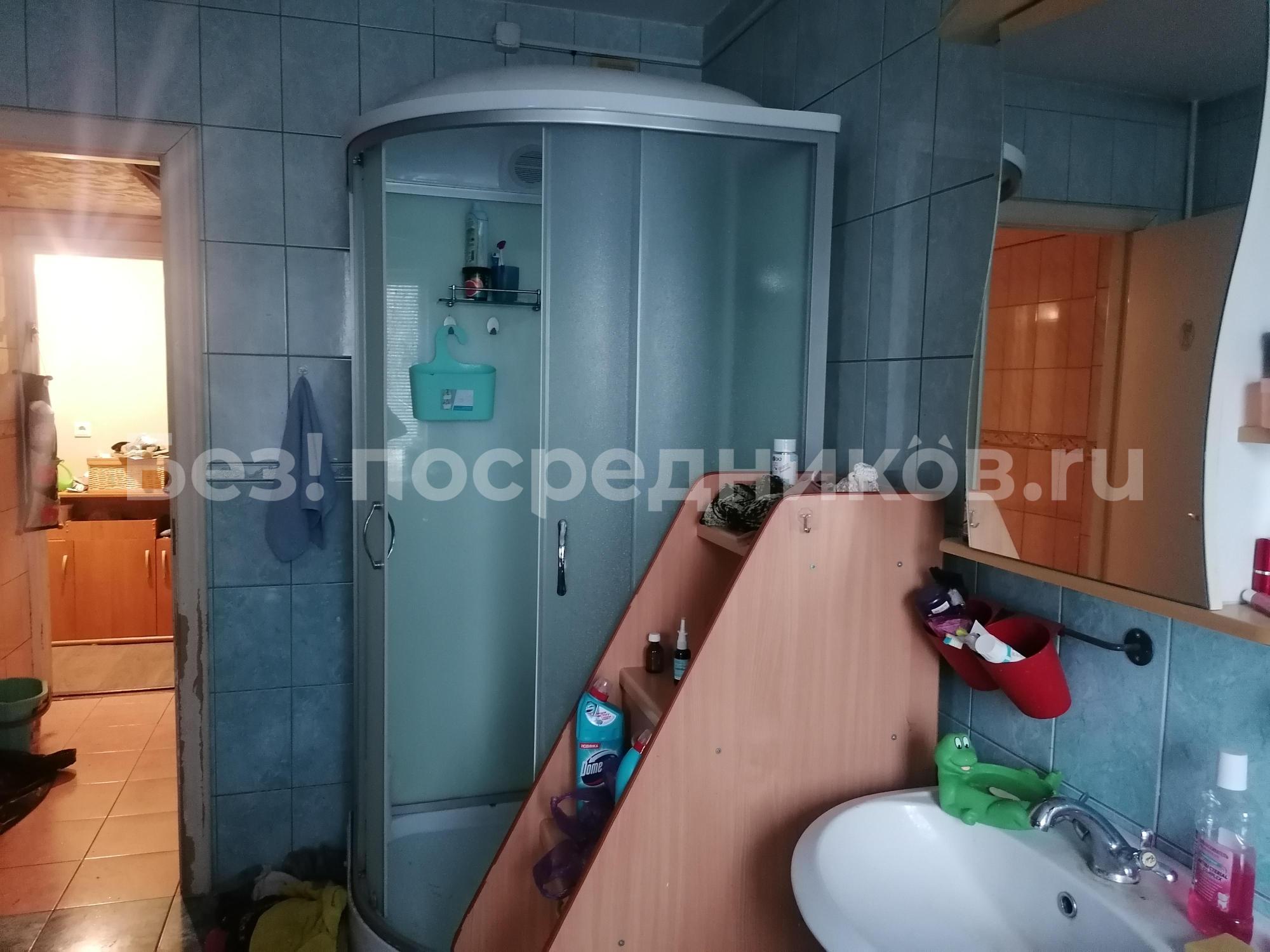 Комната 10м2 отведена под ванную, точнее в ней установлена большая душевая кабина и раковина.