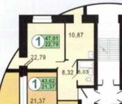 Продается просторная 1-комнатная квартира, 47 м².