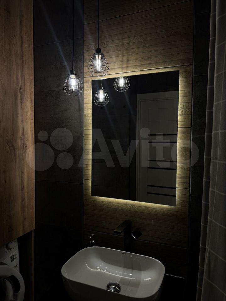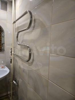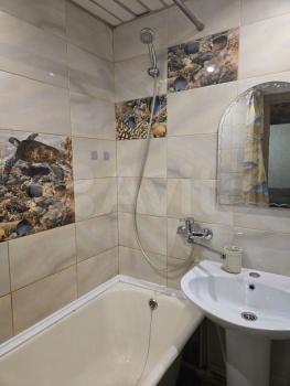 В ванной: чугунная ванная (состояние хорошее), новая сантехника, новая стиральная машинка (на гарантии ещё в течение 2х лет), кафель на полу, фартук из кафеля возле ванной, установлены счётчики, есть зеркало, вешалка и все необходимые акссесуары, работает электрическая вытяжка.