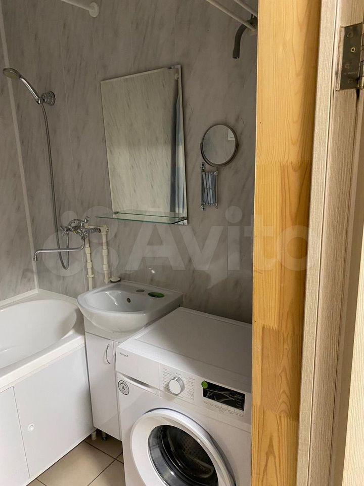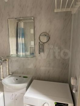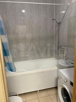 • Ванная комната с полноценной ванной, раковиной и новой стиральной машиной