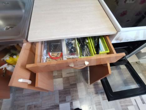 санузел - раздельный, мебель - кухня, хранение одежды, спальные места, холодильник, плита, стиральная машина, водонагреватель.