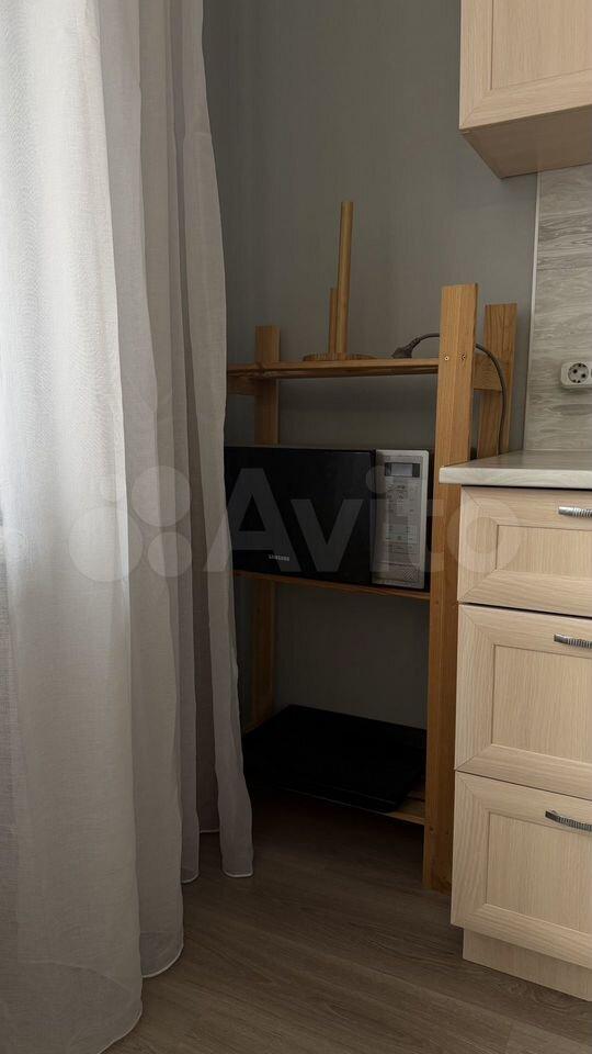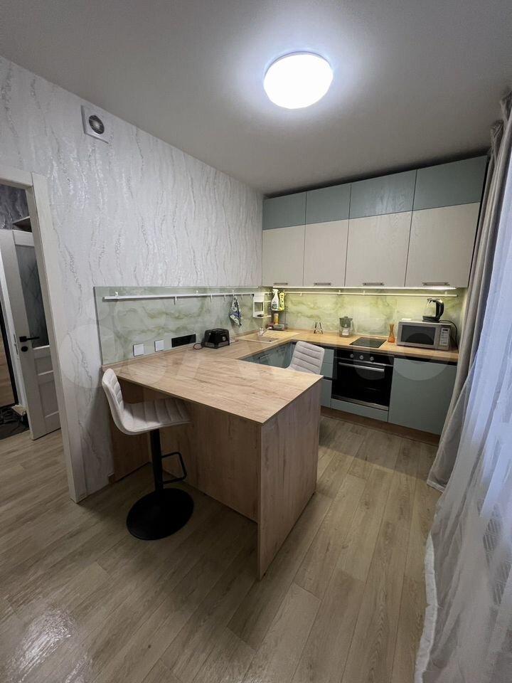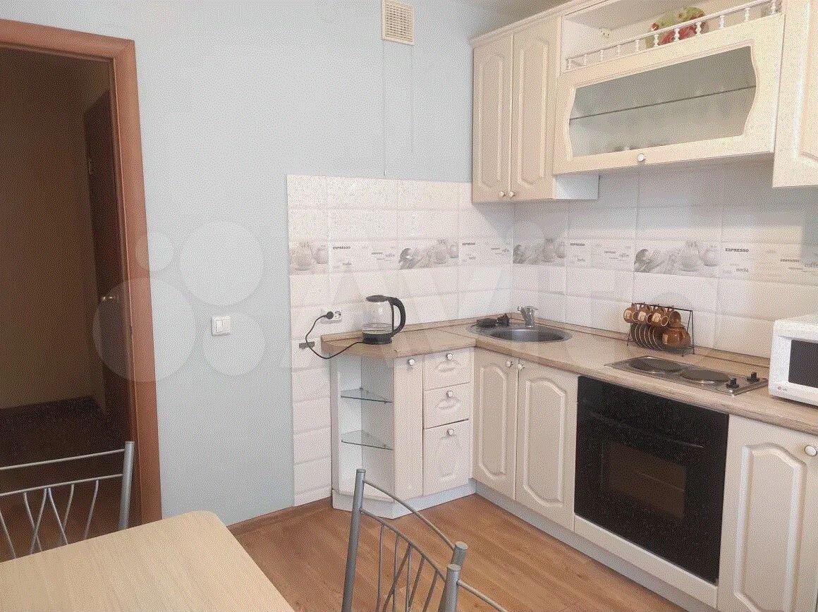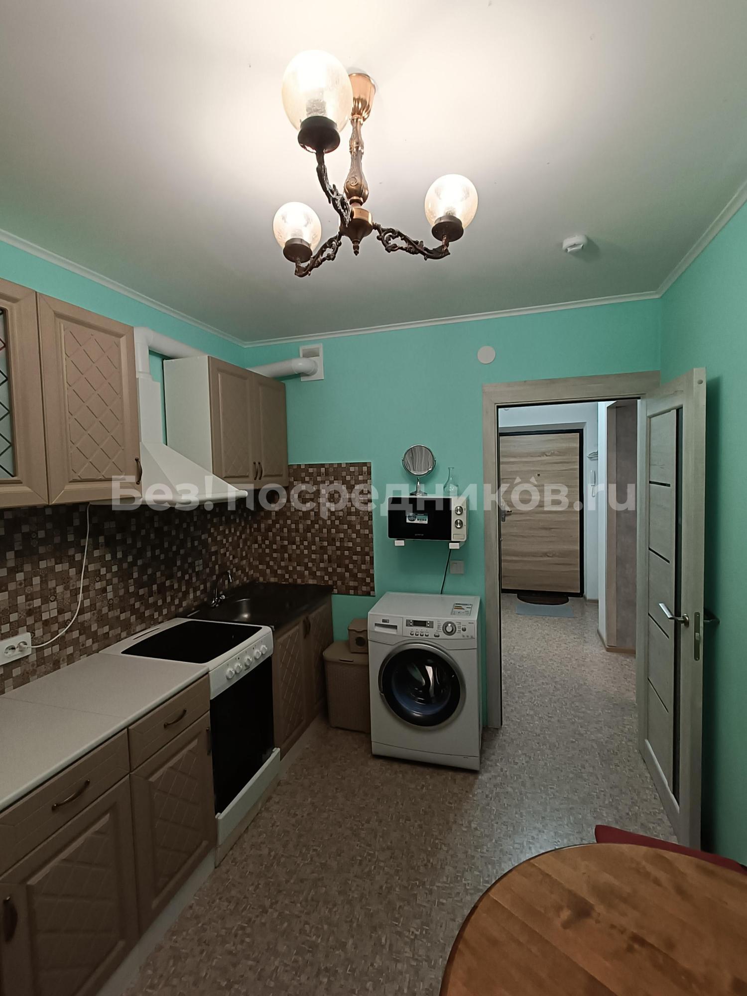 Сдается уютная однокомнатная квартира. Просторная кухня площадью 8,3 м² оснащена бытовой техникой: чайник, холодильник, микроволновая печь, мультиварка, стиральная машина, духовой шкаф, варочная панель, тостер. Из кухни есть выход на балкон.