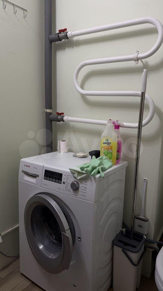 Квартира оснащена необходимой бытовой техникой, включая стиральную машину. Из мебели имеются шкафы.