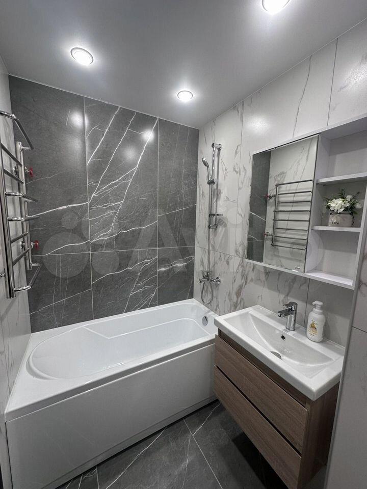 В ванной комнате есть шикарная большая ванна для Вас и ваших домочадцев, где Вы можете наполнить ее и полежать в ней с бокалом игристого, также в ванной есть ПОЛ С ПОДОГРЕВОМ, который нежно и спокойно разбудит Вас пока вы рано утром принимаете душ или умываетесь, современная сантехника поможет Вам находится в ванной с комфортом.