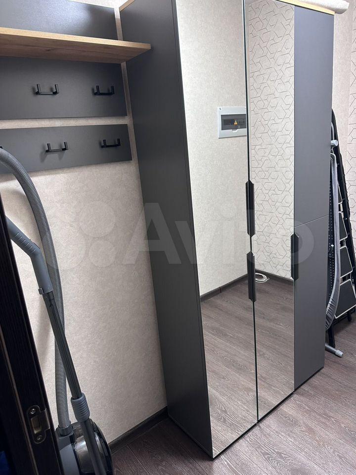 В прихожей расположен огромный шкаф для хранения где спряталась большая стиральная машина на 6кг и принадлежности для уборки квартиры. Так же в шкафу есть отделы для сезонного хранения одежды и обуви. Шикарное зеркало обязательно покажет Вам Вашу красоту перед выходом по делам. К дополнению небольшой декор в виде картин создает уют.
