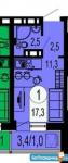 1-ком. квартира, 18 м², 17/19 эт., без комиссии