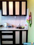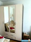 В квартире есть двуспальная кровать, шкаф с зеркалами, диван (раскладывается), телевизор (цветной, но не современный), тумбочка, кухонный гарнитур, 2 стола и журнальный столик икея, напольный светильник, 3 табуретки и стул, электроплита, духовка, микроволновка, чайник, стиральная машинка Indesit, холодильник Ariston, сушилка для белья.