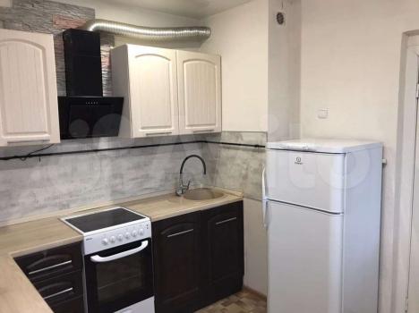 Сдам 1к квартиру. 14/14 этаж. Чистая, после ремонта. В квартире шкаф-купе, кухонный гарнитур, плита, стиральная машина, холодильник.
