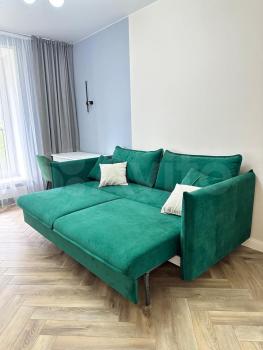 Тёплая, уютная квартира, мебелирована (стиральная машинка, кухонный гарнитур, плита, холодильник, микроволновка, кухонный стол, табуреты, прихожая, гардеробная, письменный стол, диван, шкаф, шкаф-пинал).