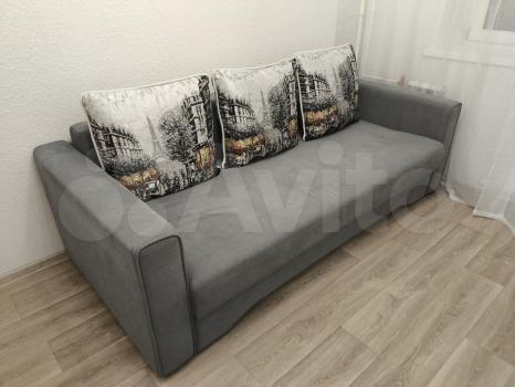 Имеется стиральная машина, плита, диван...