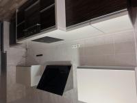Кухня полностью оборудована техникой (плита, посудомойка, холодильник, вытяжка)
