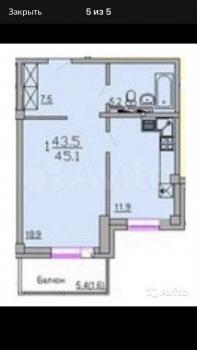 1-к. квартира, 45 м², 8/17 эт., от собственника