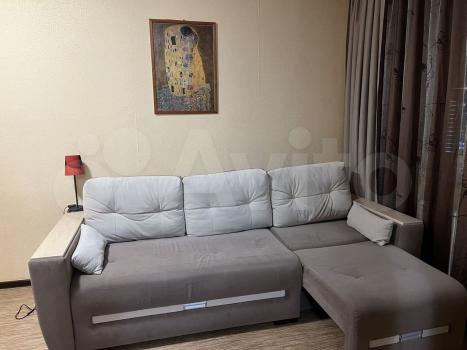 Сдам 1 комн квартиру: угловой шкаф, диван на два спальных места,письменный стол, кухонный гарнитур,обеденная зона,плита с духовкой,большой холодильник,посуда.Балкон застеклён. Собственник.