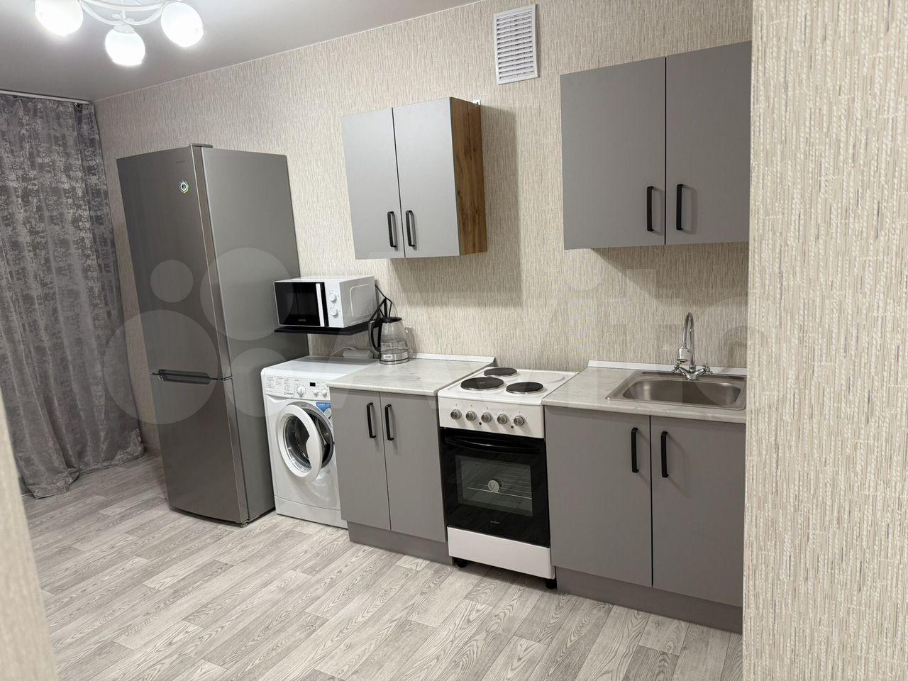 Однокомнатная квартира в новом доме. В квартире никто не жил, мебель и бытовая техника новые. Закрытая детская площадка. Школа и остановка напротив дома.