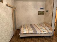 В комнате просторный диван, шкаф, телевизор, стол, комод. Санузел совмещенный.