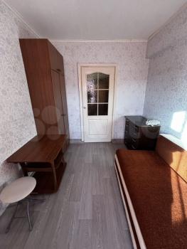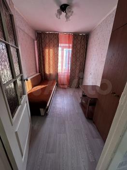 В квартире кухня-гостиная и две отдельных небольших спальни. Одна из спален без окна. Санузел совмещеннный. Балкон есть, застеклённый.