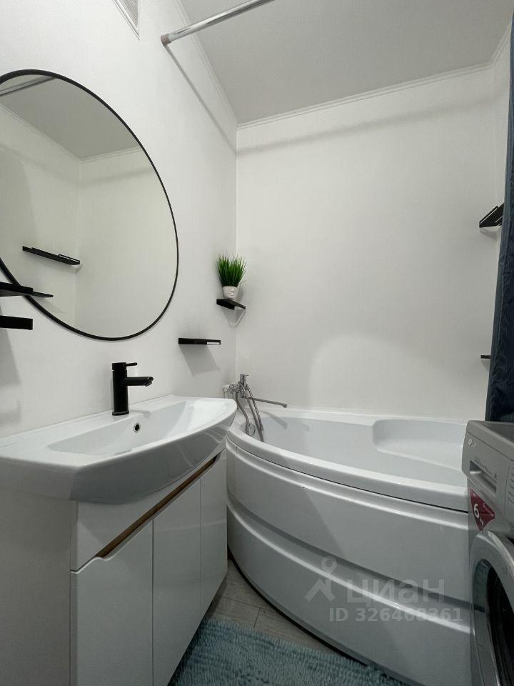 В гостиной установлен удобный диван и телевизор, а также рабочая зона с письменным столом. Спальня оборудована двуспальной кроватью и вместительным шкафом. В ванной комнате установлена душевая кабина и стиральная машина.