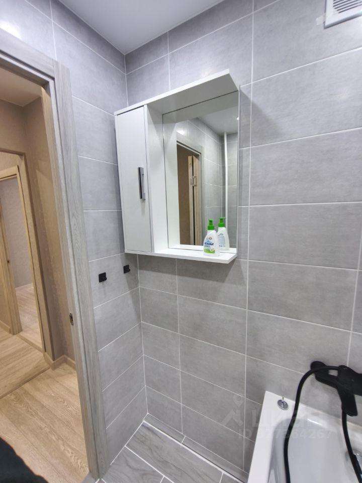В квартире имеется вся необходимая мебель: шкафы, диван, обеденный стол и стулья. Из техники — холодильник, плита и стиральная машина. В ванной комнате установлена ванна и раковина.