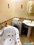 Бытовая техника (ванна-джакузи с пузырьковым и гидро-массажем, тихая стиральная машина, датчики протечки во всех помещениях, проточный 7кВ водонагреватель, многофункциональная программируемая эл.плита, оснащённая духовкой с термощупом и керамической варочной поверхностью, зеркальный холодильник, микроволновая печь, мощная вытяжка, пылесос, утюг, фен).