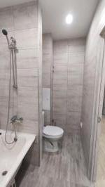 Санузел совмещённый в новом кафеле. На полу керамогранит. Вся сантехника новая.
