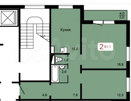 2-к квартира, 61.7 м²75 000 р.