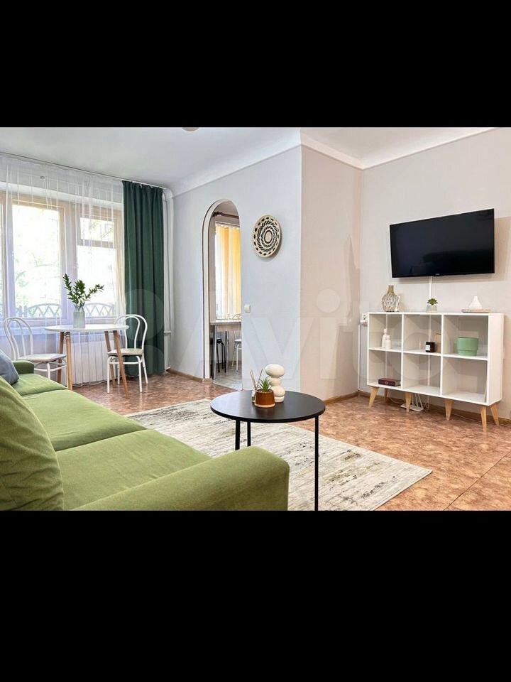 В квартире выполнен косметический ремонт, комнаты изолированы, что создает уютную атмосферу для проживания. В гостиной установлен современный диван и телевизор, а также вместительные шкафы для хранения вещей.