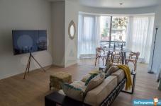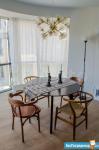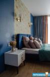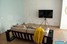 В квартире выполнен ремонт из качественных европейских материалов, кухня объединена с гостиной, 2 изолированных комнаты, 2 санузла (один из них- хозяйственный), большая гардеробная при входе. Качественный текстиль и дизайнерская мебель. Панорамные окна в пол. Есть все и даже больше для комфортного проживания.