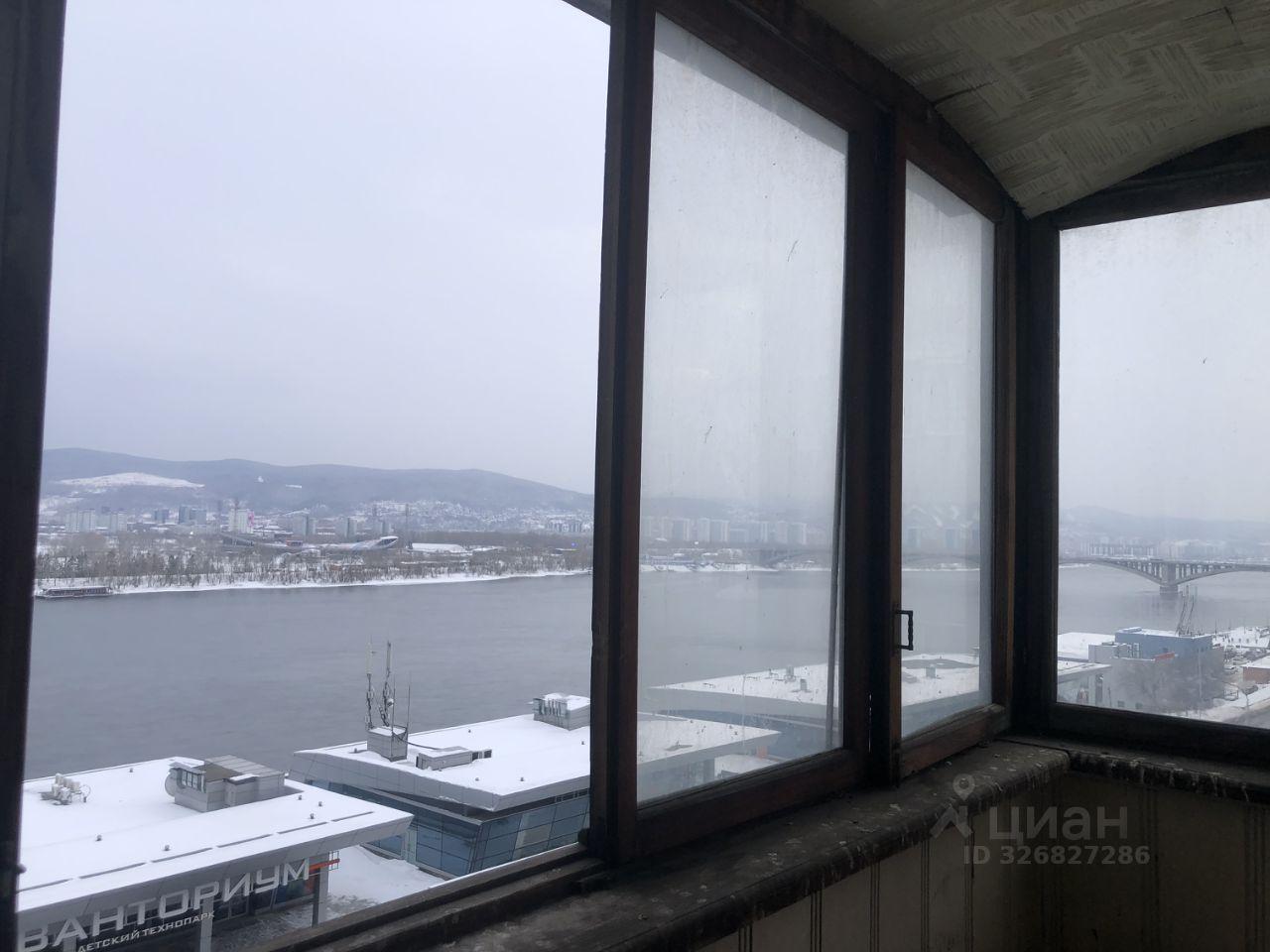 балкон с видом на Енисей и коммунальный мост (требует небольшой уборки и ремонта, обговаривается)