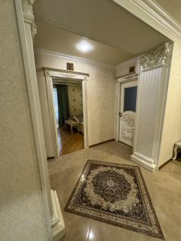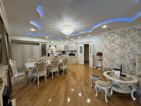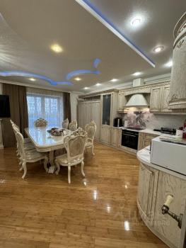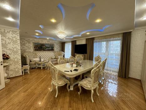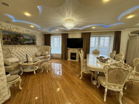 В квартире сделан дизайнерский ремонт, есть вся необходимая мебель и техника. Кухня площадью 26.4 кв.м оборудована холодильником, посудомоечной машиной и стильной мебелью. В комнатах также есть мебель, поэтому можно сразу заезжать и жить. В квартире два санузла: один совмещенный и один отдельный, что удобно для большой семьи. Ванная комната оснащена современной ванной.