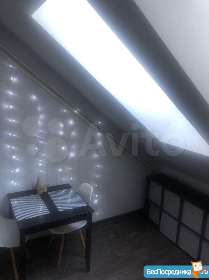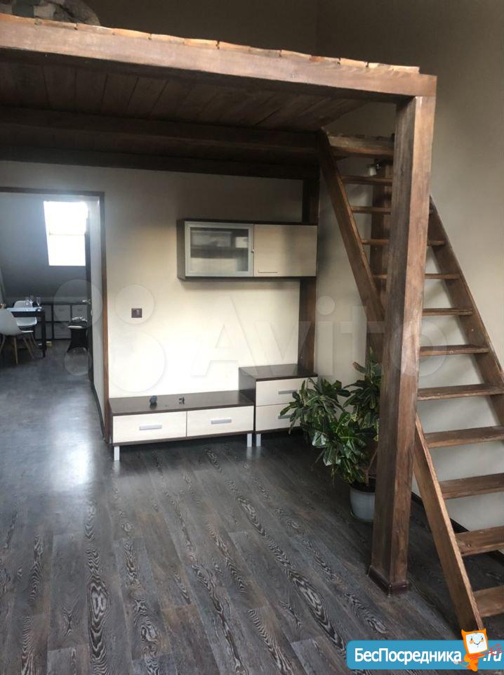 Просторная квартира, ранее никогда не сдавалась. Мансарда, в одной из комнат высота потолка около 5 м, сделана антресоль, стоять можно в полный рост (там размещено спальное место). Полностью оборудованная кухня, вместительный встроенный шкаф, балкон, парковочное место (двор под шлагбаумом).
