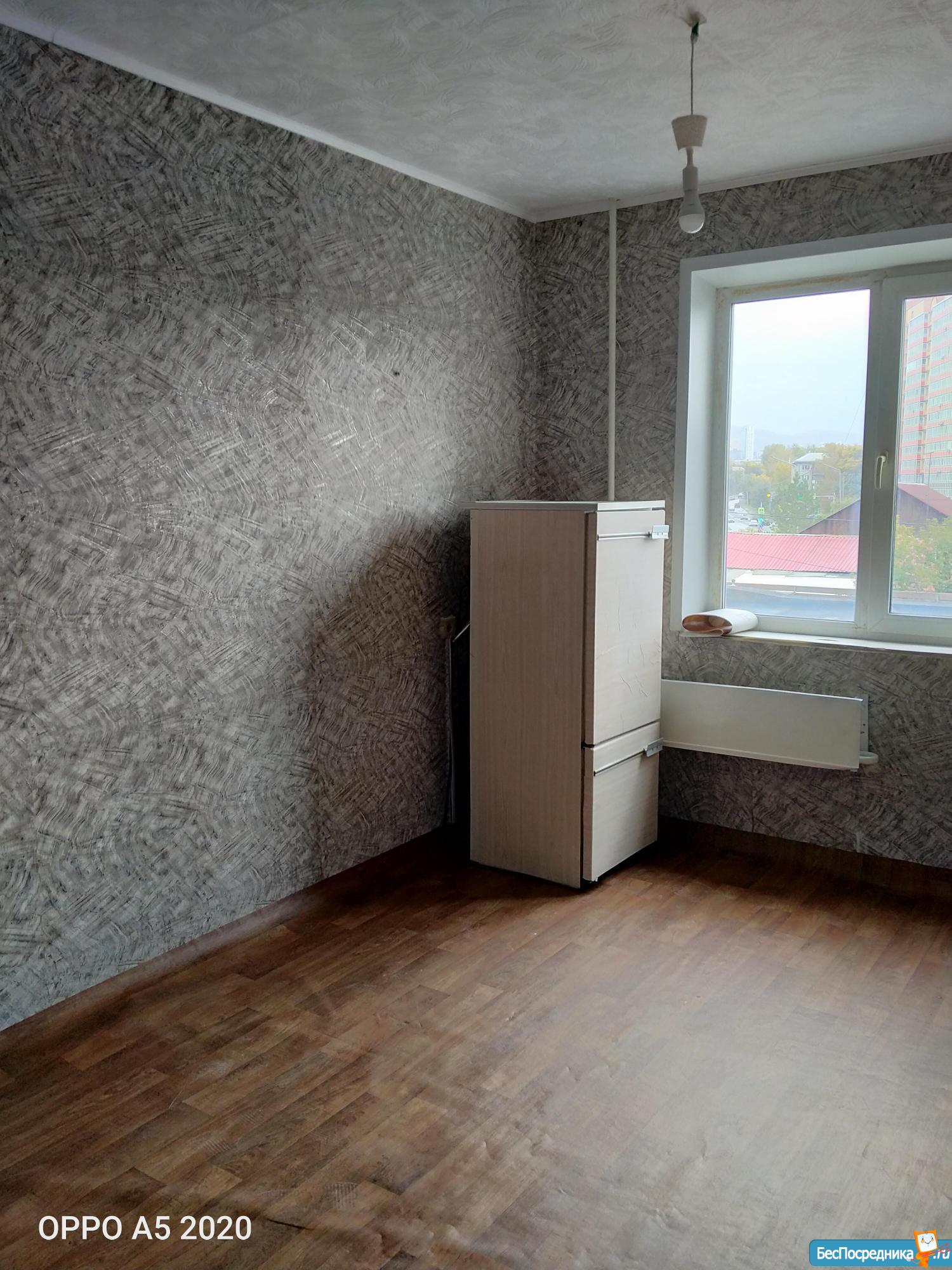 На длительный срок. Из мебели холодильник, стол.