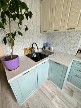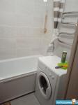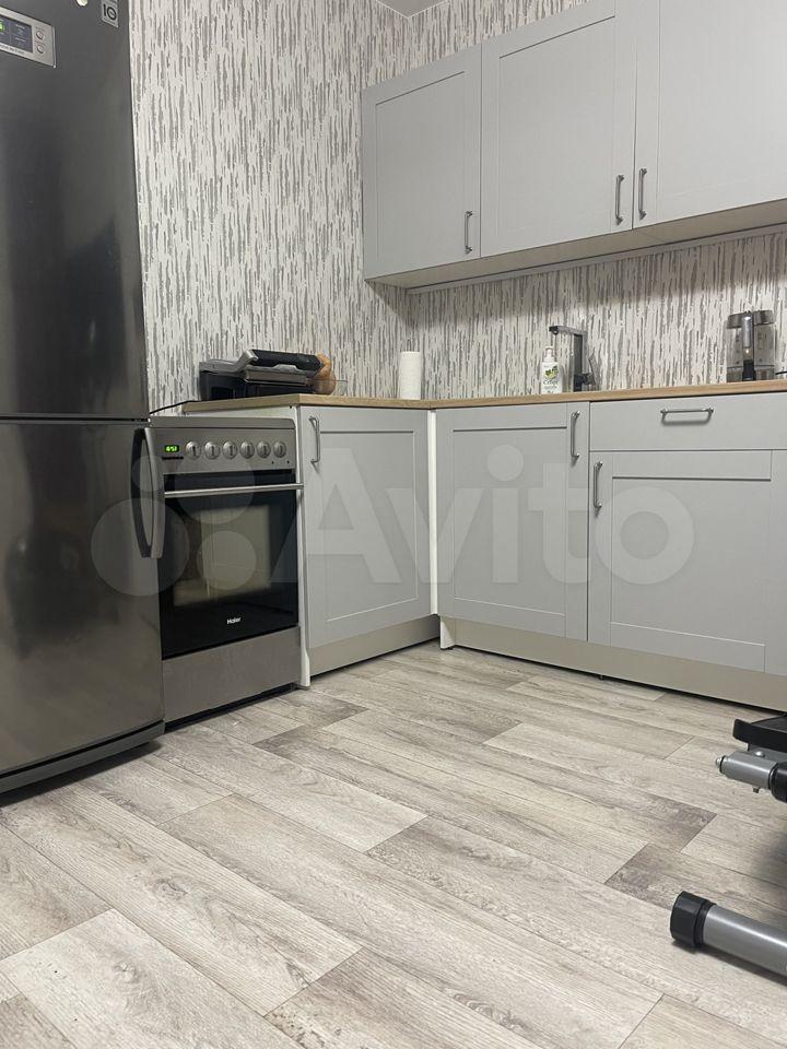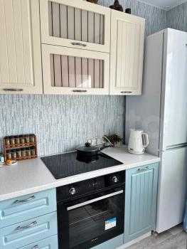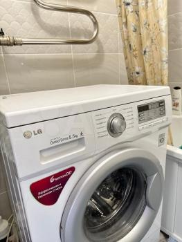 В квартире новая мебель и техника: встроенная кухня, холодильник, стиральная машина. Диван, телевизор.