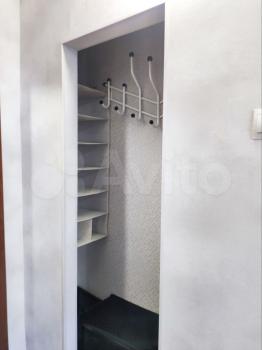 В коридоре шкаф Стенли, установлена входная металлическая шумоизоляционная дверь, полы в коридоре и санузле - керамогранит под цвет ламината в гостиной.