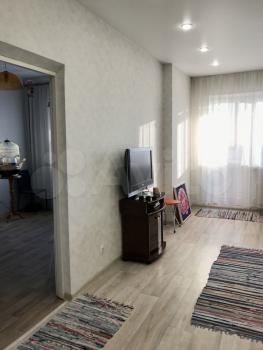 В квартире свежий ремонт, что видно по современному дизайну и качественным материалам. Просторная комната с выходом на застеклённую лоджию, откуда открывается приятный вид на город.
